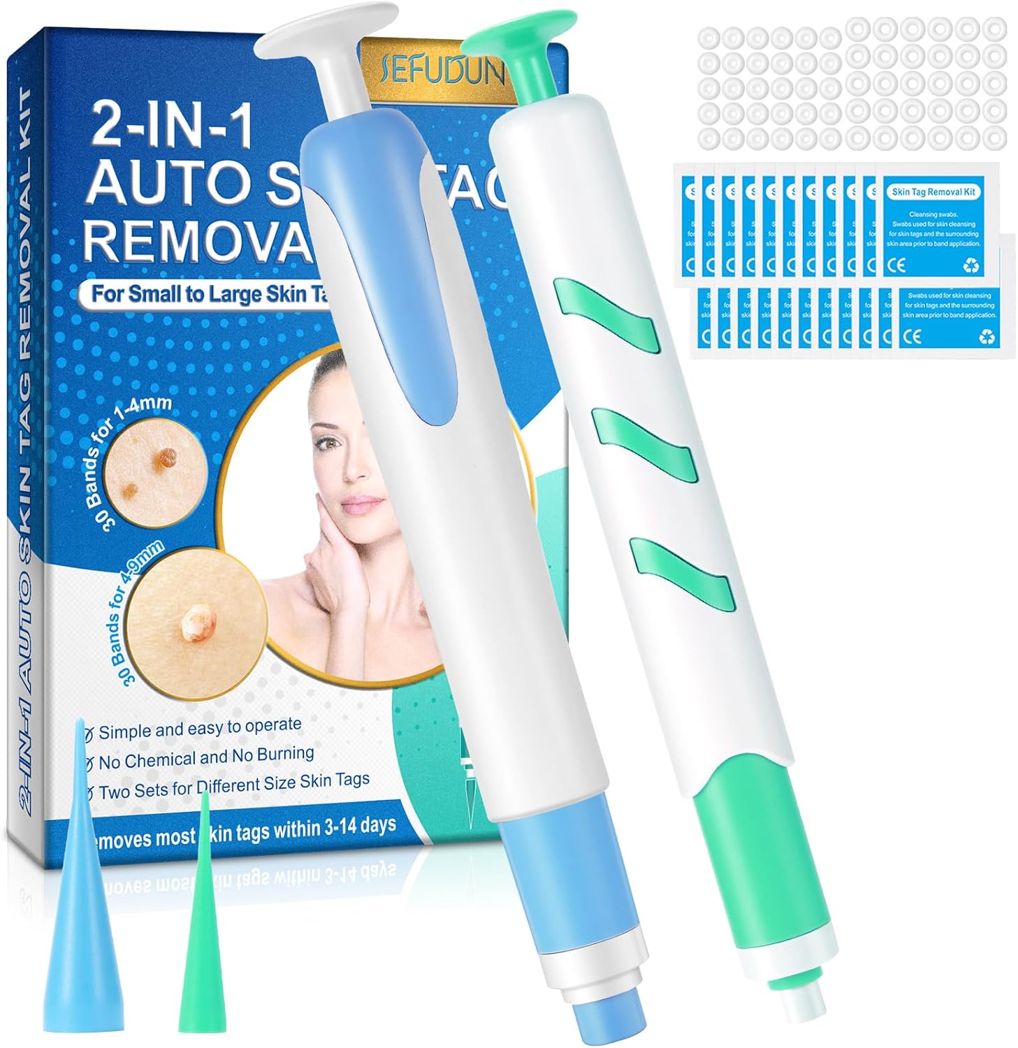 - 2 IN 1 SET, SUPER RICH ACCESSORIES :for Medium to Large (2mm - 9mm) Skin Tags are equipped with a wider range of accessories. 60x skin tag bands & 20 cleansing wipes, which can fit small to large skin tags.